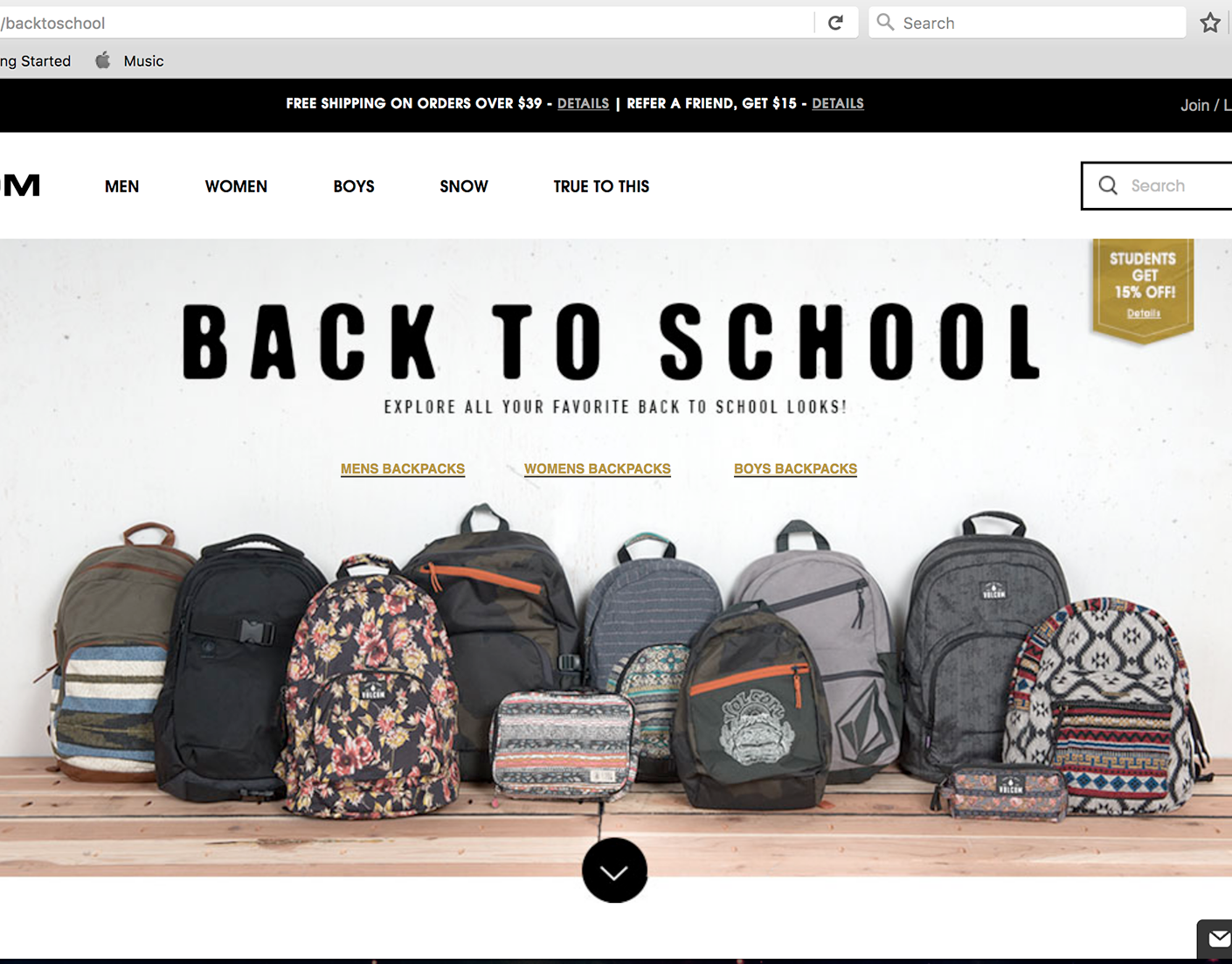 Volcom Back To School Website Design
